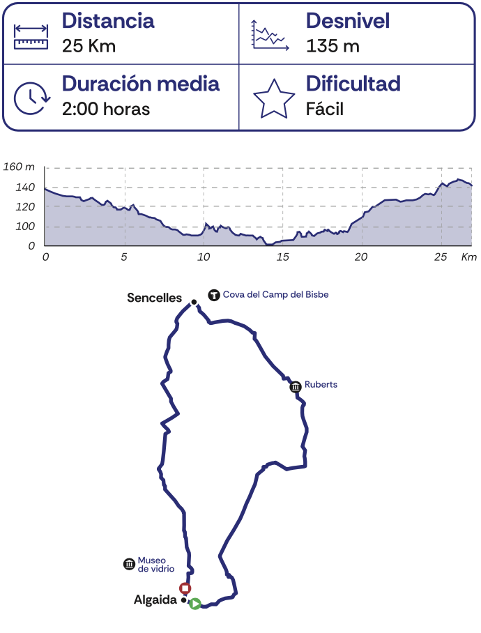 Ruta de dificultad media que precisa de una buena forma física ya que transcurre por algunos tramos sin asfaltar. En el recorrido se pueden visitar varios molinos de viento, típicos del paisaje del Pla. A su vez, también se puede disfrutar de varios puntos que componen la ruta talaiótica entre Costitx y Sencelles como el talaiot de Binifat.